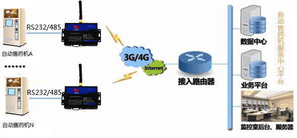 工業(yè)級(jí)2G/3G/4G DTU自助售藥機(jī)數(shù)據(jù)傳輸系統(tǒng)應(yīng)用方案