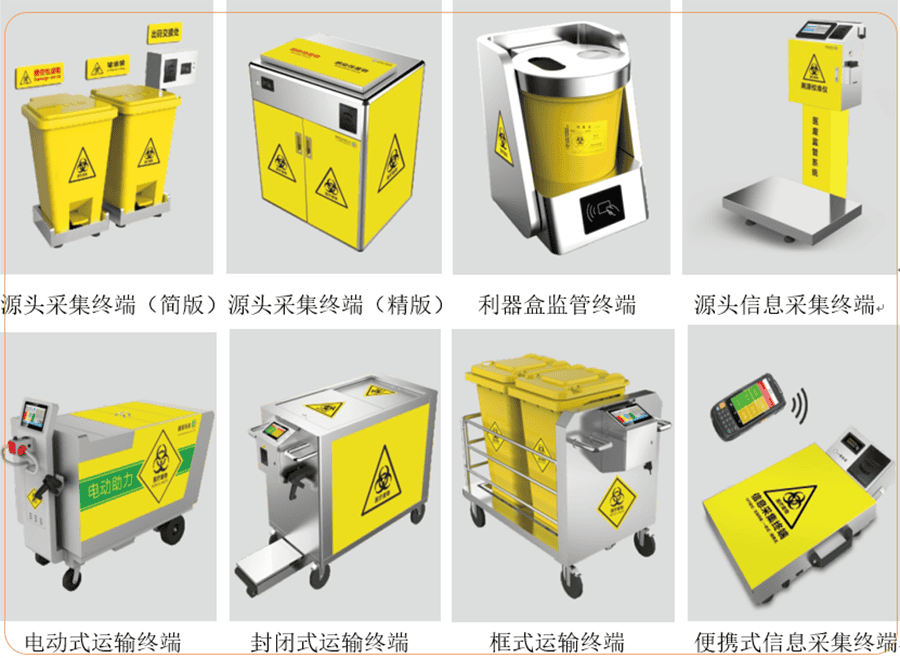 根據(jù)用途和使用場(chǎng)景的不同,硬件產(chǎn)品可分為源頭信息采集終端、利器盒監(jiān)管終端、信息采集運(yùn)輸終端、便攜式信息采集終端四類(lèi);源頭信息采集終端具備感應(yīng)開(kāi)門(mén)、只進(jìn)不出,滿(mǎn)溢報(bào)警,刷卡開(kāi)門(mén)、授權(quán)清運(yùn),自動(dòng)稱(chēng)重、自動(dòng)出馬;自動(dòng)上傳至云端平臺(tái);利器盒監(jiān)管終端:智能鎖定、以防丟失,一人一卡,身份識(shí)別,專(zhuān)桶專(zhuān)用、權(quán)限開(kāi)門(mén);源頭信息采集終端:7寸觸摸屏,掃碼識(shí)別核對(duì)數(shù)據(jù),熱敏打印、自動(dòng)出碼,自動(dòng)稱(chēng)重,數(shù)據(jù)上傳;信息采集運(yùn)輸設(shè)備:掃碼登入、單方權(quán)限,GPS定位,顯示軌跡,掃碼識(shí)別,核對(duì)數(shù)據(jù),自動(dòng)稱(chēng)重,自動(dòng)出碼。