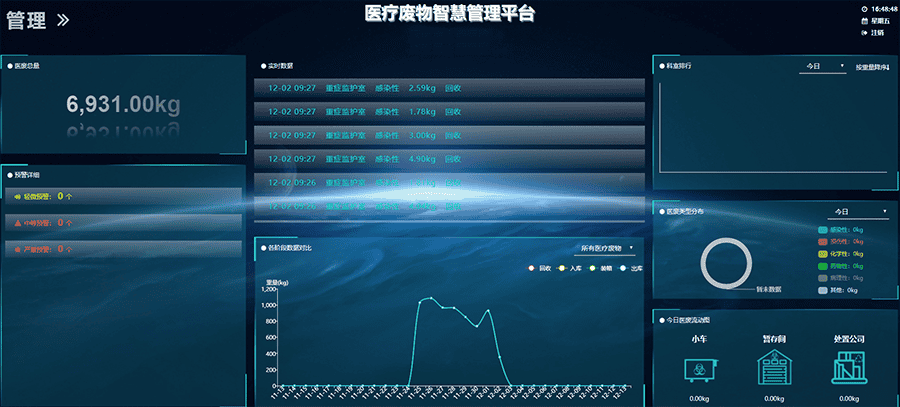 智慧醫(yī)療廢棄物綜合管理系統(tǒng)對(duì)醫(yī)院內(nèi)所有醫(yī)療廢棄物進(jìn)行全領(lǐng)域覆蓋全天候數(shù)據(jù)監(jiān)管,實(shí)現(xiàn)全程監(jiān)管,避免遺失,單向流通, 避免人為原因所造成的醫(yī)療廢物的遺失, 真正做到從源頭開(kāi)始全程監(jiān)管,避免醫(yī)療廢物在科室或投放點(diǎn)垃圾桶上的監(jiān)管缺失。實(shí)現(xiàn)精準(zhǔn)數(shù)據(jù)分析查詢(xún),通過(guò)醫(yī)院醫(yī)療廢棄物信息化監(jiān)管平臺(tái), 促進(jìn)對(duì)醫(yī)療廢物的規(guī)范管理, 提高監(jiān)管效率, 對(duì)醫(yī)療廢棄物清運(yùn)管理中存在的問(wèn)題可以實(shí)時(shí)查詢(xún),信息溯源, 責(zé)任明確, 做到精細(xì)化的信息化閉環(huán)式監(jiān)管。實(shí)時(shí)將醫(yī)廢采集、運(yùn)輸和存儲(chǔ)設(shè)備的運(yùn)行參數(shù)發(fā)送到控制中心,使監(jiān)管人員全面掌握各個(gè)醫(yī)衛(wèi)機(jī)構(gòu)的醫(yī)療廢物產(chǎn)生、回收、處置情況,利用“物聯(lián)網(wǎng)+”的模式,在醫(yī)療廢物收集、清運(yùn)、存儲(chǔ)的全過(guò)程跟蹤管理和實(shí)時(shí)監(jiān)控。